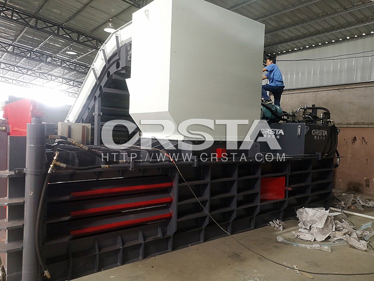 广东东莞150T卧式半自动废纸打包机安装调试成功
